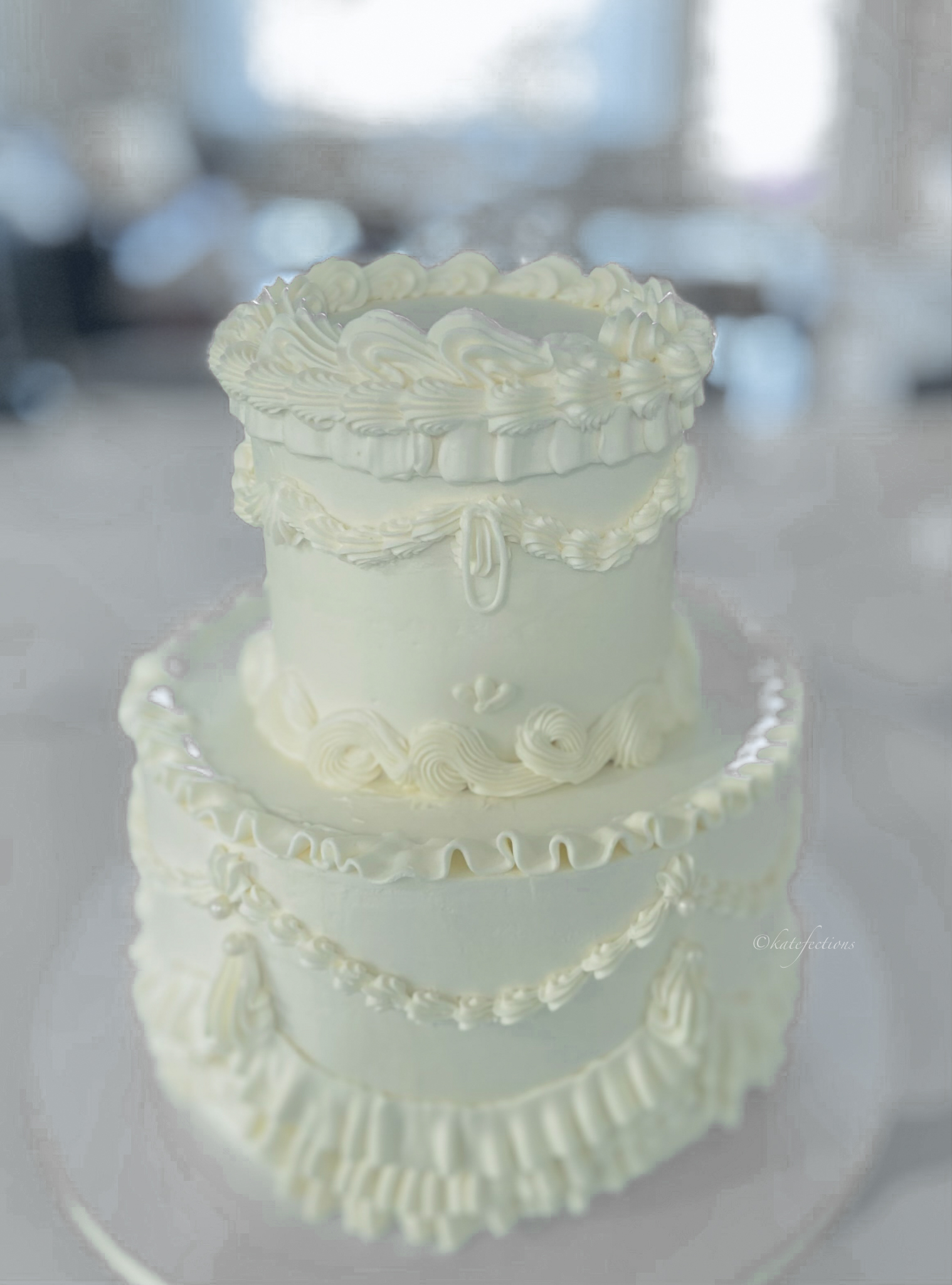 Each cake is made fresh and consists of three layers. Flavor choices are: Very vanilla, chocolate, lemon, wedding white, funfetti , biscotti and fudge marble. All cakes are covered with Swiss/Italian meringue buttercream.